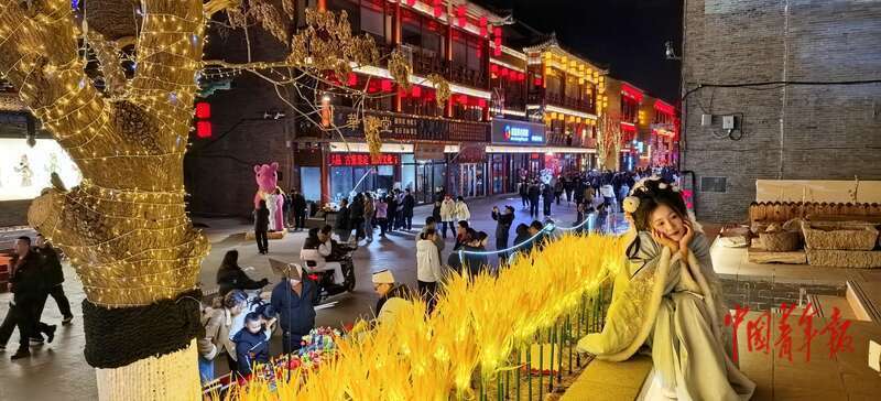 2月20日晚,辽宁朝阳,2026年辽宁朝阳迎春灯会现场,一位身穿古装的女士正在拍照。春节期间,当地北塔广场、慕容街灯火璀璨、人潮涌动,来自四面八方的市民与游客前来赏花灯、观非遗,在光影流转间解锁年味十足的新春佳节。据介绍,今年当地的迎春灯会以“灯”为媒,以“文”为魂,融合千年文脉、非遗技艺与现代科技力量,打造出一场兼具视觉震撼与情感温度的沉浸式光影盛宴。中青报·中青网记者 李建泉/摄
