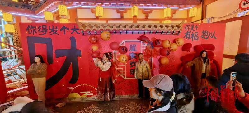 2月20日晚,辽宁朝阳,2026年辽宁朝阳迎春灯会现场,人们在一处打卡点拍照。中青报·中青网记者 李建泉/摄