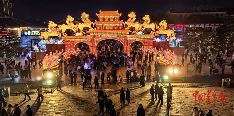 2月20日晚,辽宁朝阳,2026年辽宁朝阳迎春灯会现场人头攒动。中青报·中青网记者 李建泉/摄