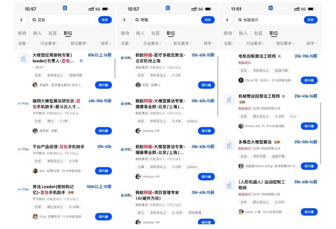 例如,字节跳动的豆包业务给“大模型应用架构专家”开出了128万元的年薪,“平台产品经理”月薪最高也达到6万元。