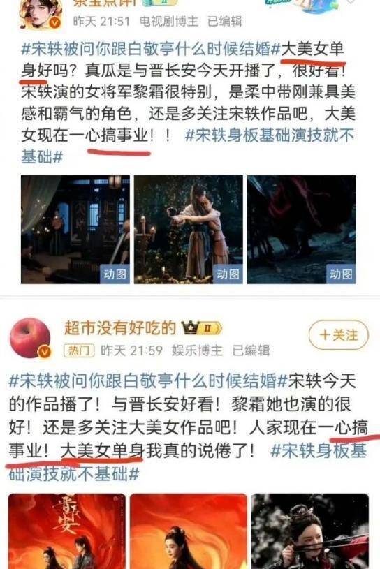 紧接着,网上铺天盖地冒出“宋轶大美女单身独美”的通稿。